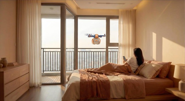 Bên cạnh đó, nhận thấy việc nhận hàng đang trở thành một gánh nặng tại các khu chung cư cao tầng, Ahamove đã đưa ra lời giải bằng dịch vụ máy bay không người lái - Drone Delivery để vận chuyển hàng đến thẳng ban công của căn hộ. Hệ thống điều khiển Drone sẽ quét qua các tòa nhà bằng lưới công nghệ để nhận diện địa chỉ chính xác của khách hàng.