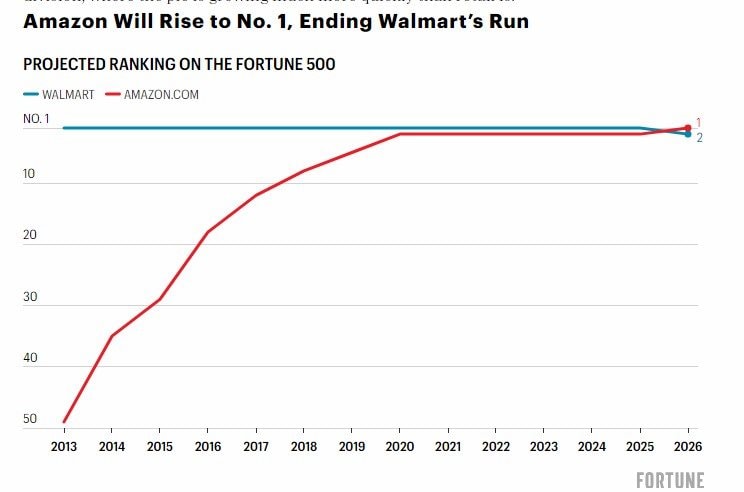Tờ Fortune nhận định ngày 19/2 vừa qua sẽ đi vào lịch sử kinh tế Mỹ như một cột mốc của sự chuyển giao thế hệ. Amazon, từ một hiệu sách trực tuyến khởi nghiệp trong gara của Jeff Bezos, đã chính thức vượt qua Walmart để trở thành công ty có doanh thu hàng năm lớn nhất xứ sở cờ hoa.