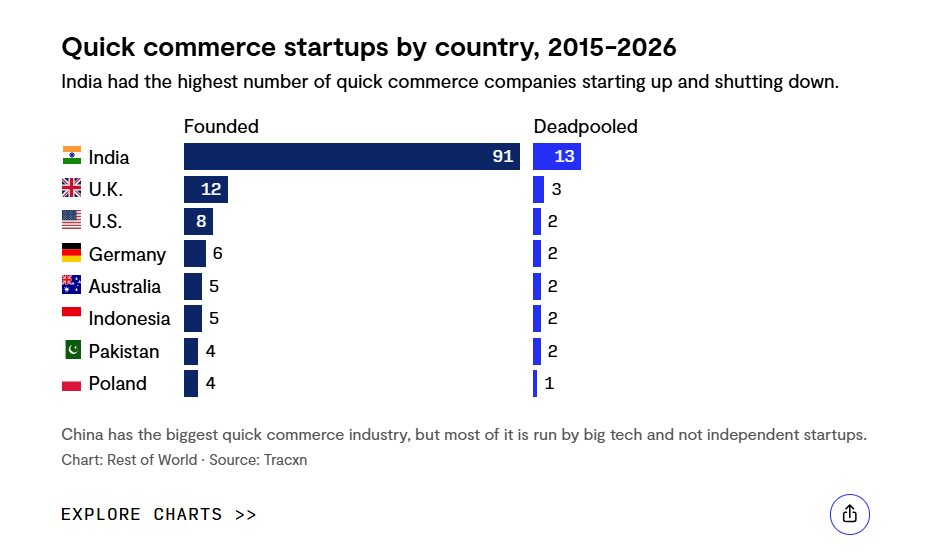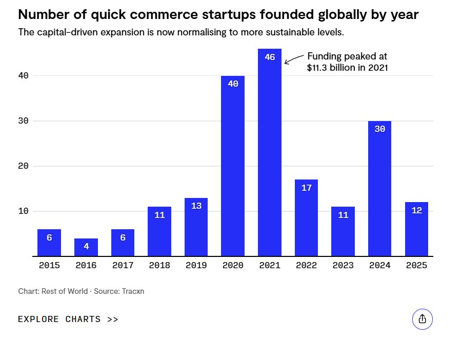 Trong khi đó, tại Ấn Độ, các ứng dụng như BlinkIt và Zepto đang dẫn đầu làn sóng này, biến đây trở thành lĩnh vực thu hút vốn đầu tư mạo hiểm hàng đầu trong những năm qua.