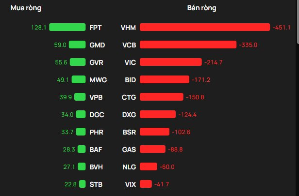 Ngược lại, VHM là cổ phiếu khối ngoại bán mạnh nhất với 451 tỷ đồng. Theo sau, các cổ phiếu VCB và VIC cũng bị "xả" 335 tỷ đồng và 214tỷ đồng.