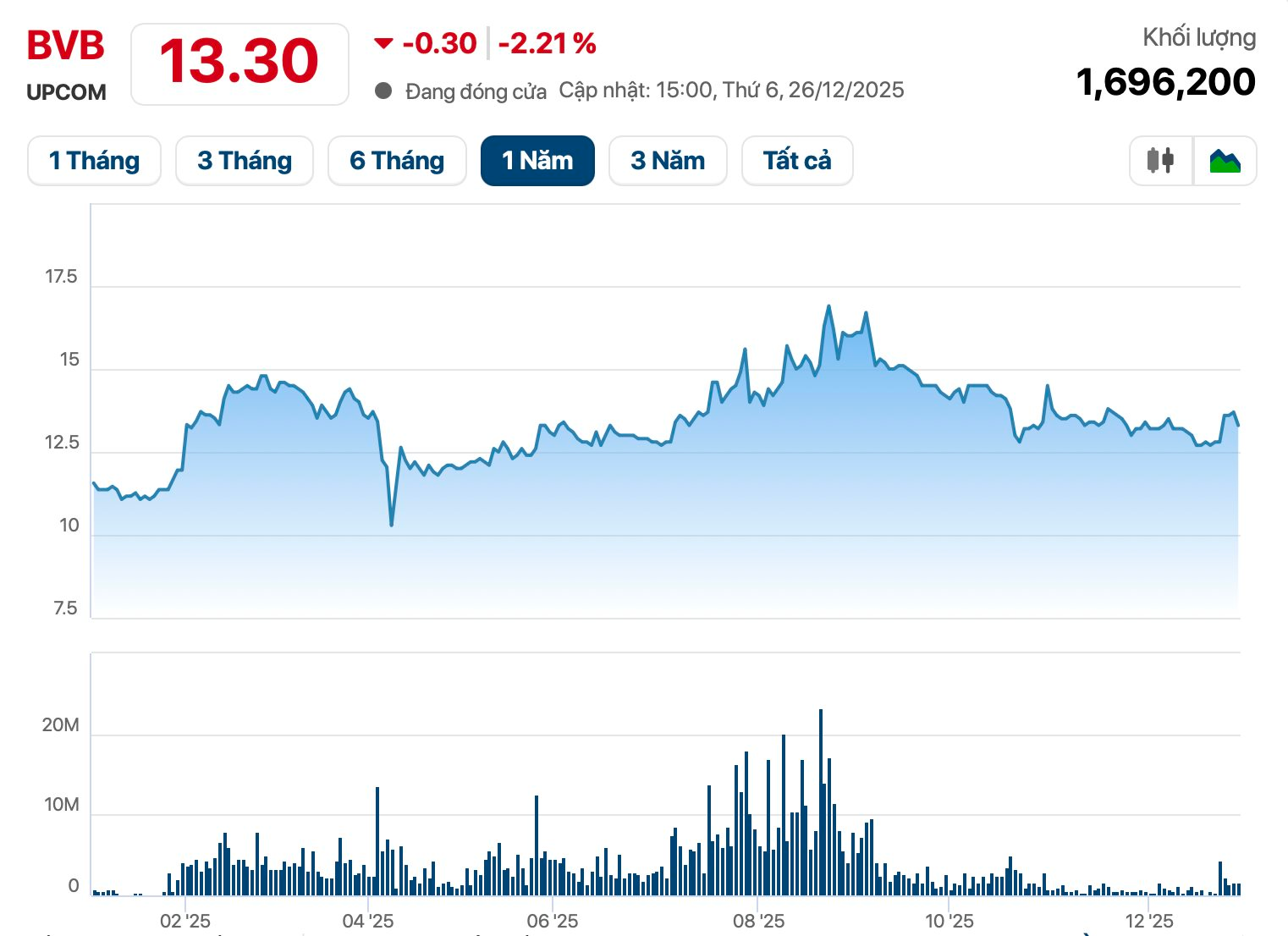 Trên sàn chứng khoán, cổ phiếu BVB đang dừng ở mức 13.300 đồng/cp, tăng gần 17% so với đầu năm. Vốn hóa thị trường của BVBank tương ứng vào khoảng 8.500 tỷ đồng.