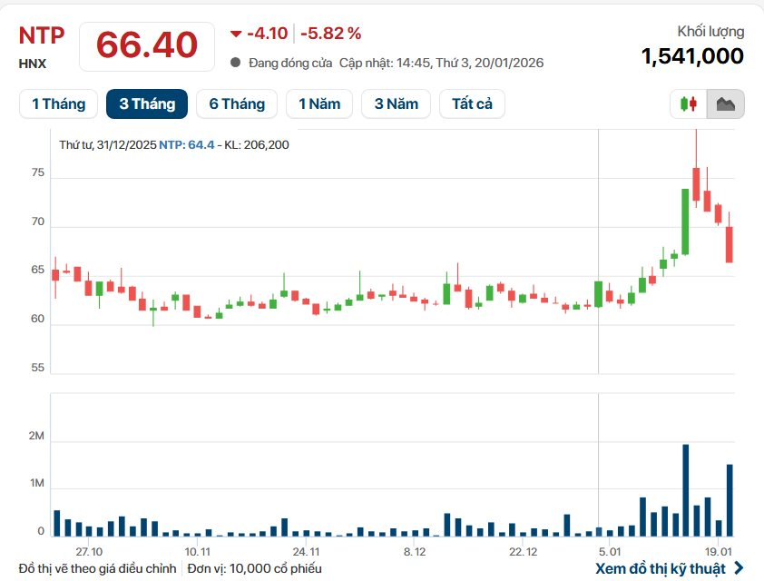 Trên thị trường chứng khoán, cổ phiếu NTP chốt phiên giao dịch ngày 20/1 ở mức 66.400 đồng/cp, tương ứng với vốn hoá 11.357 tỷ đồng.