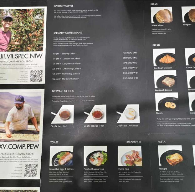 Đến với quán cà phê đặc biệt này, mỗi khách hàng sẽ được nhân viên tận tình trao đổi để hiểu rõ nhu cầu trải nghiệm từ cơ bản đến sâu sắc. Sau đó, nhân viên đưa ra những gợi ý trải nghiệm cơ bản nhất, ví dụ như các loại cà phê có giá 125.000 VNĐ, để khách làm quen với cà phê đặc sản mà không bị "hàn lâm" quá mức…