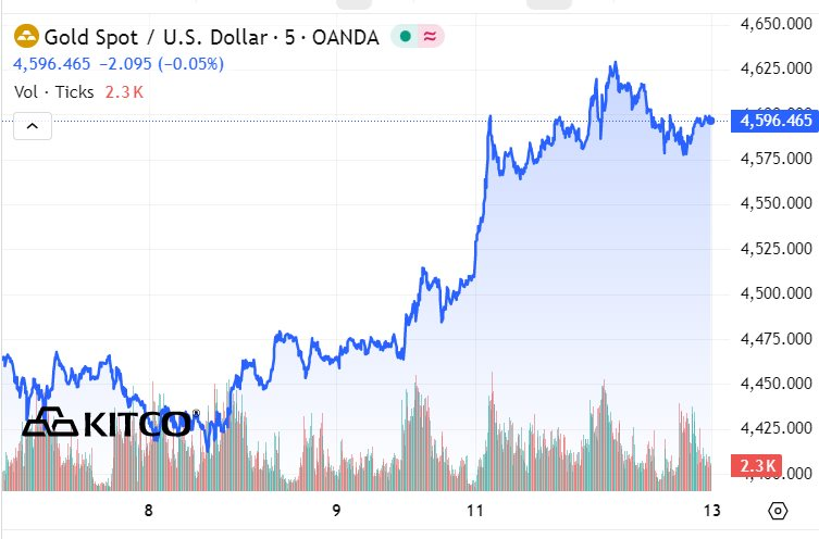 Trên thị trường quốc tế, giá vàng giao ngay hiện giao dịch ở 4.595,1 USD/ounce, tăng 30,2 USD/ounce so với cùng thời điểm phiên trước. Quy đổi theo tỷ giá của Vietcombank, giá vàng thế giới tương đương 146,2 triệu đồng/lượng (chưa gồm thuế và phí), thấp hơn giá trong nước khoảng 15,8 triệu đồng/lượng.