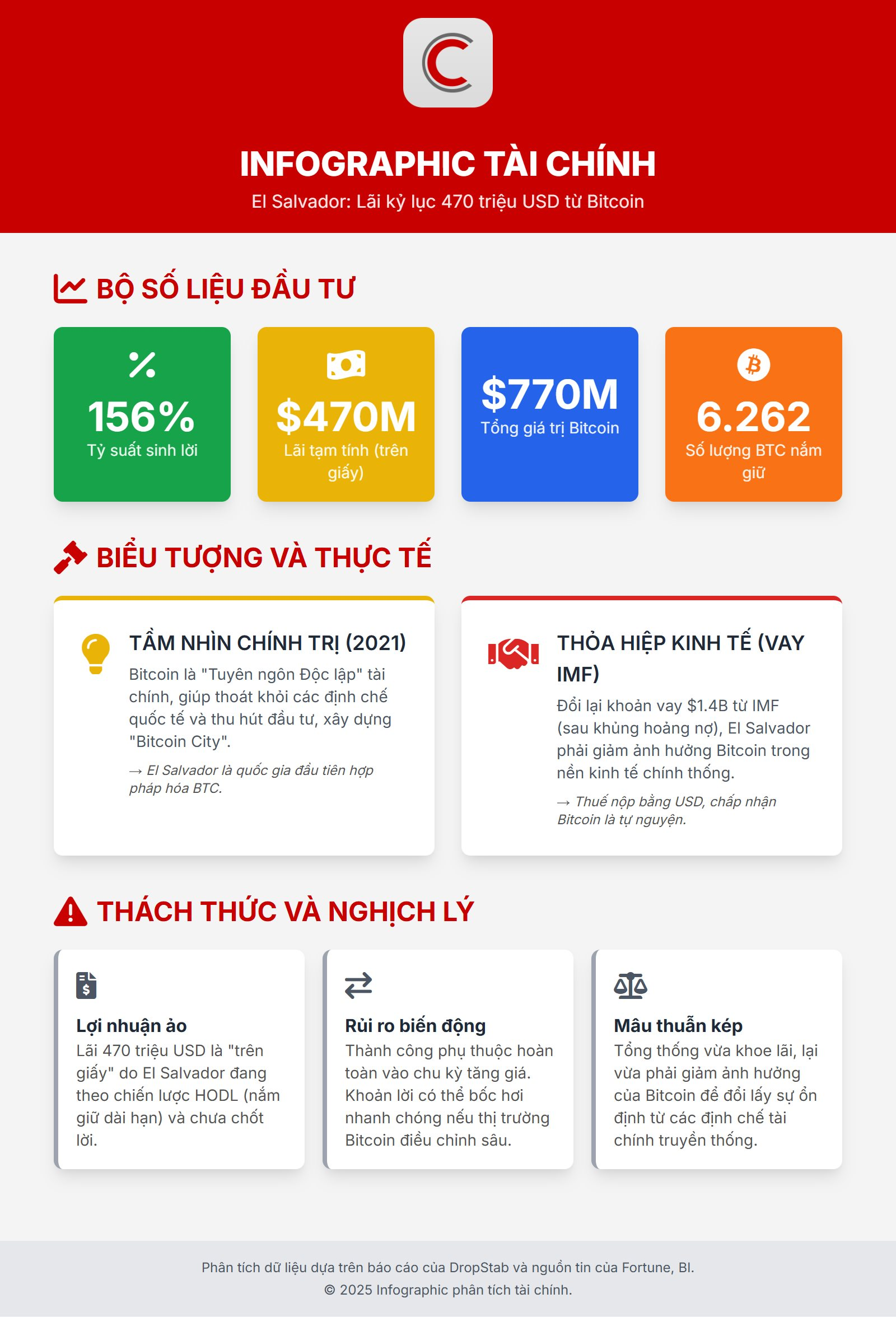 Với Tổng thống Bukele, Bitcoin không chỉ là một tài sản đầu tư, mà là biểu tượng của chủ quyền quốc gia, một tuyên ngôn rằng El Salvador có thể đi ngược trật tự tài chính toàn cầu và vẫn sống sót. Nhưng giới quan sát cảnh báo rằng canh bạc này chưa kết thúc. Nếu Bitcoin giảm sâu, khoản lời có thể bốc hơi trong vài ngày, trong khi nền kinh tế El Salvador vẫn phụ thuộc lớn vào kiều hối và vay nợ nước ngoài.