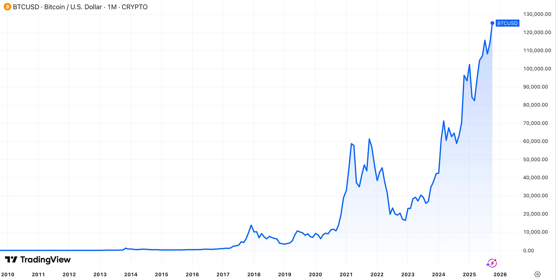 Bitcoin (BTC) đang có một khởi đầu mùa “Uptober” suôn sẻ khi liên tục tăng mạnh vượt mức 125.000 USD, qua đó lập đỉnh mới. Từ đầu tháng 10, BTC đã tăng 10% qua đó đẩy vốn hóa thị trường của Bitcoin lập kỷ lục lên 2.500 tỷ USD.