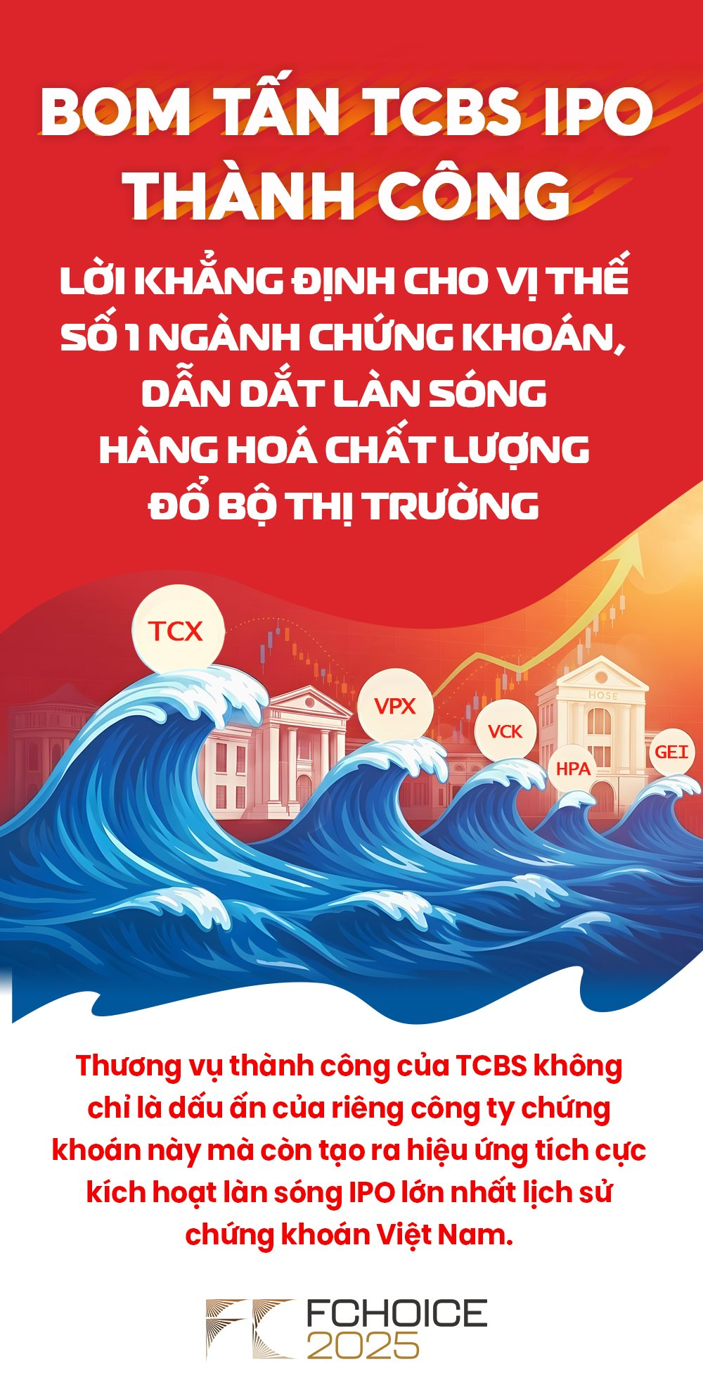 Sức hấp dẫn từ thương vụ này cho thấy mức độ sẵn sàng chấp nhận cao của dòng tiền đối với các hàng hoá mới, chất lượng. TCBS IPO thành công được Finance Asia đánh giá là thương vụ có ảnh hưởng lớn nhất thị trường chứng khoán Việt Nam năm 2025, vinh danh trong hạng mục “Best IPO 2025”.