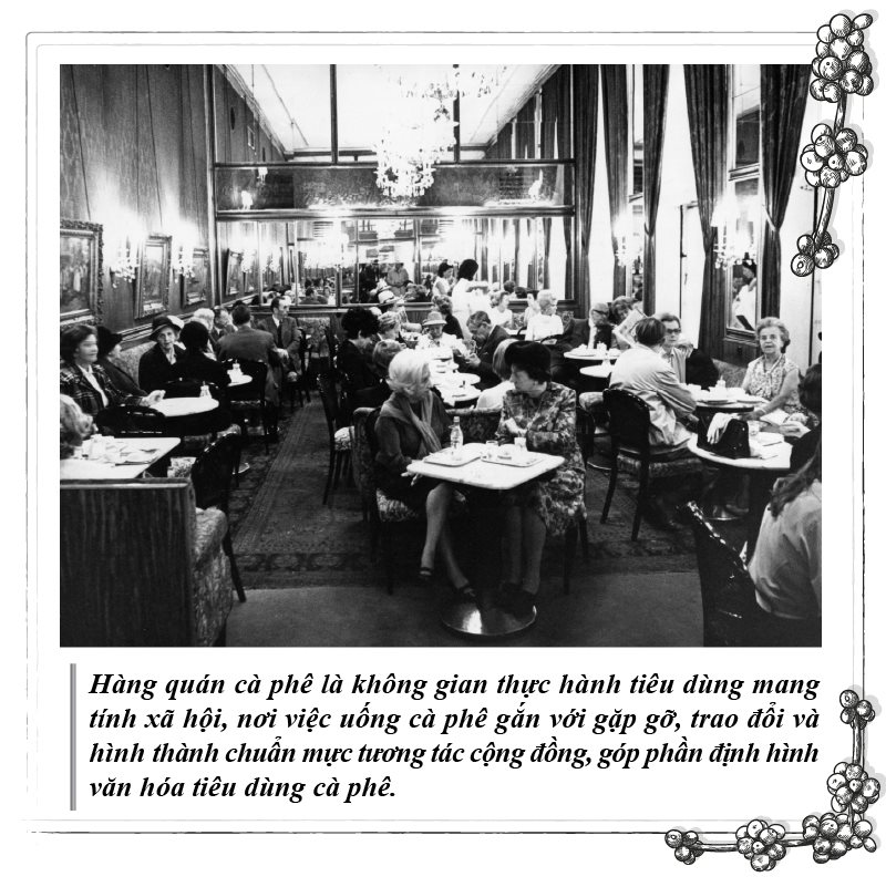 Từ khi xuất hiện đến thời kỳ Khai sáng, cà phê và hàng quán cà phê đóng vai trò là nguồn năng lượng thăng hoa sáng tạo và trở thành không gian giao lưu tri thức, nơi các cá nhân gặp gỡ, tranh luận và lan tỏa tư tưởng. Từ đây, tiêu dùng cà phê gắn liền với đời sống trí thức và tinh thần lý tính, trở thành biểu tượng cho khát vọng lĩnh hội tri thức và tiến bộ xã hội.