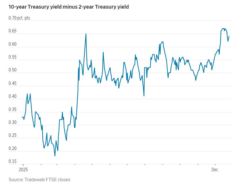 Trong những tuần gần đây, chênh lệch giữa lợi suất trái phiếu kho bạc ngắn hạn và dài hạn đã nới rộng. Một số người coi đây là dấu hiệu cho thấy nhà đầu tư ngày càng lo ngại về tính độc lập của Fed. Vì họ dự báo lãi suất sẽ thấp hơn trong ngắn hạn, nhưng không chắc chắn trong dài hạn.
