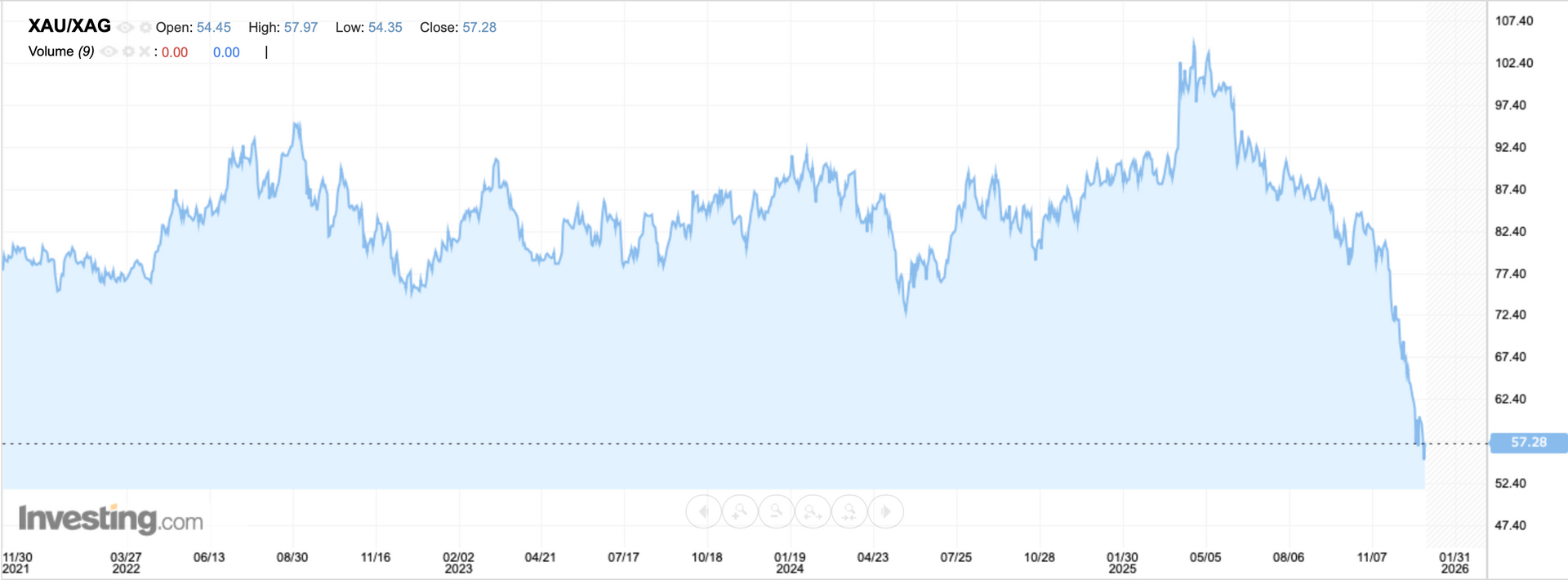 Ông Widmer lưu ý rằng tỷ lệ vàng/bạc hiện tại khoảng dưới 60 cho thấy bạc vẫn có thể vượt trội hơn vàng. Ông dẫn chứng mức thấp nhất trong 15 năm qua là 32 vào năm 2011 cho thấy giá bạc cao nhất là 135 USD, trong khi mức vàng/bạc thấp nhất năm 1980 là 14 cho thấy giá bạc là 309 USD/oz.