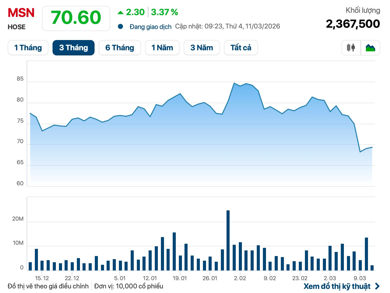 Động thái của ông Danny Le diễn ra trong bối cảnh cổ phiếu MSN giảm mạnh về dưới 70.000 đồng/cp, vùng giá thấp nhất kể từ giữa 2025. Tạm tính theo mức thị giá hiện tại, giá trị giao dịch vào khoảng 350 tỷ đồng.