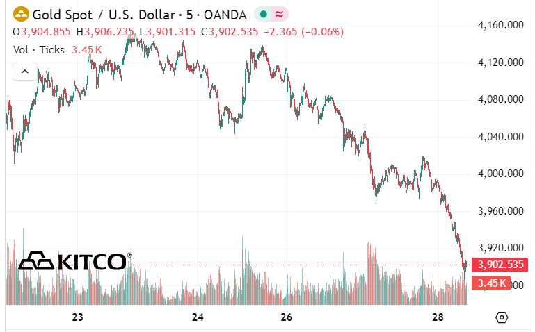 Trong khi đó, ông Ole Hansen, Trưởng bộ phận chiến lược hàng hóa của Saxo Bank, dự báo giá vàng có thể bước vào giai đoạn tích lũy mới. Ông cho biết sau khi vượt 3.000 USD/ounce, vàng từng đi ngang suốt bốn tháng, và kịch bản tương tự có thể lặp lại. Ngưỡng hỗ trợ cần theo dõi là 3.846 USD/ounce – mức thoái lui quan trọng từ đợt tăng giá hồi tháng 8.