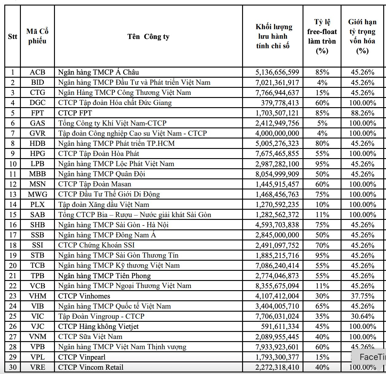 Cụ thể, cổ phiếu Vinpearl (VPL) đã lọt rổ VN30 trong kỳ cơ cấu này. Ở chiều ngược lại, mã BCM bị loại khỏi danh mục.