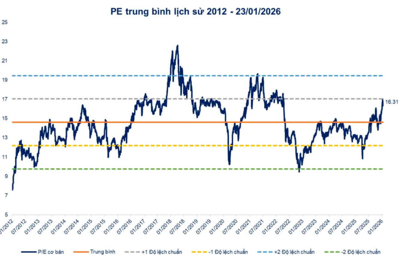 Bên cạnh đó, việc mặt bằng lãi suất duy trì ổn định, áp lực tỷ giá hạ nhiệt và môi trường chính sách rõ ràng hơn sẽ đóng vai trò hỗ trợ tâm lý, giúp dòng tiền sẵn sàng chấp nhận mặt bằng giá cao hơn. Tuy nhiên, đây đều là những yếu tố cần thời gian để thẩm thấu và khó tạo ra tác động tức thì trong một vài phiên hay một tuần giao dịch.