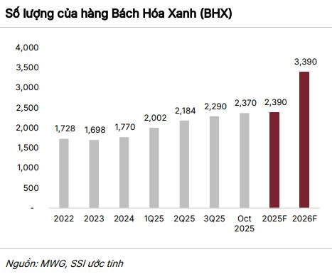 Theo định hướng ban lãnh đạo, MWG có kế hoạch mở mới 620–1.000 cửa hàng BHX trong giai đoạn 2025–2026. Năm 2026, Capex dự kiến tập trung cho đầu tư công nghệ thông tin, hệ thống kho bãi và logistics nhằm hỗ trợ mở rộng mạng lưới và tối ưu hóa vận hành. Phần lớn cửa hàng mới sẽ được mở tại miền Trung và miền Nam, trong khi miền Bắc được triển khai thận trọng hơn, bắt đầu từ Ninh Bình. SSI nhận định miền Bắc là thị trường tiềm năng nhưng mức độ cạnh tranh cao do sự hiện diện mạnh của WinMart, đặc biệt trong việc thấu hiểu hành vi người tiêu dùng địa phương.