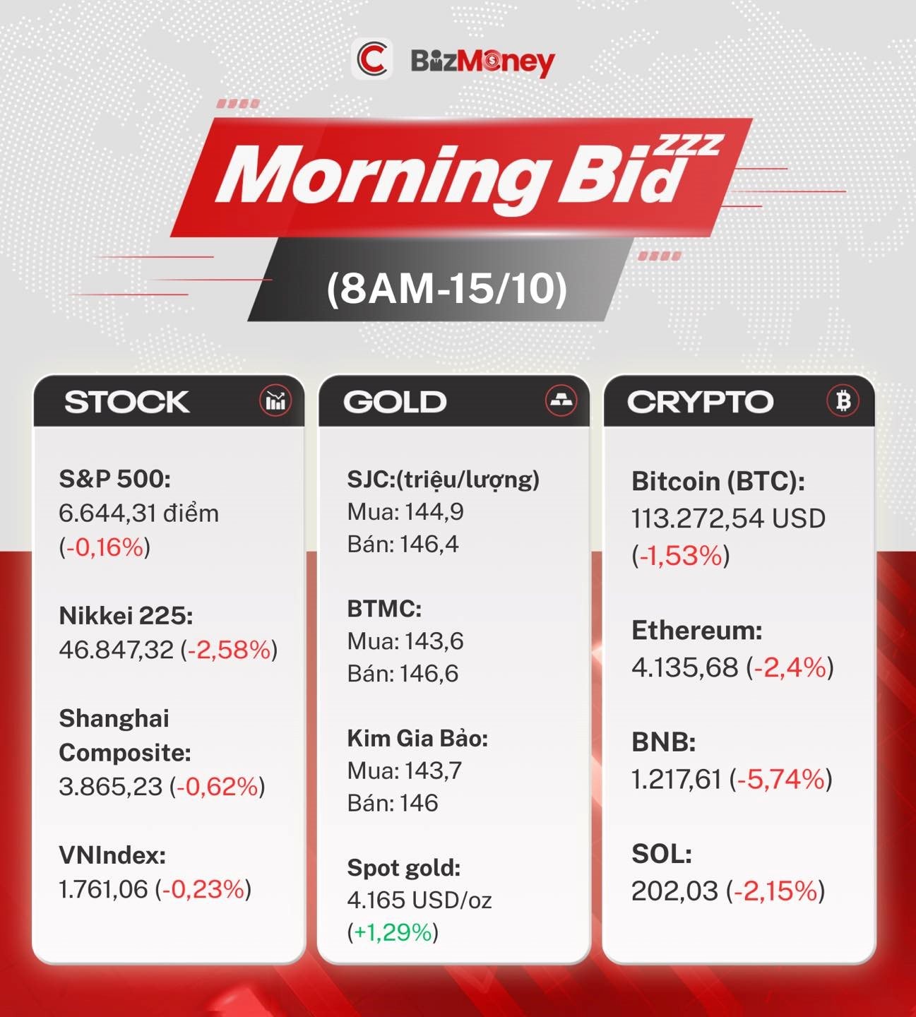 Trên thị trường tiền số, phản ứng cũng khá rõ rệt: giá các đồng lớn như Bitcoin và Ether đều ghi nhận mức giảm trong phiên giao dịch sau tuyên bố của Trump. Theo Reuters, Bitcoin và Ether đã giảm khi căng thẳng Mỹ–Trung tăng lên, “xoá sạch” phần tăng của phiên trước đó.