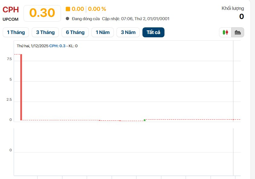 Điểm nghịch lý thú vị tại CPH nằm ở diễn biến trên thị trường chứng khoán. Dù kinh doanh có lãi và duy trì lịch sử trả cổ tức bằng tiền mặt liên tục trong 10 năm qua với tỷ lệ cao (năm 2024 trả 1.960 đồng/cổ phiếu, tương đương tỷ suất sinh lời xấp xỉ 20% trên mệnh giá), cổ phiếu CPH trên sàn UPCoM lại gần như không có thanh khoản.