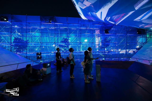 Không gian triển lãm với nghệ thuật sắp đặt ánh sáng lạ mắt thu hút giới trẻ xếp hàng để tham quan, trao đổi và mở ra các góc nhìn mới về sáng tạo nghệ thuật.