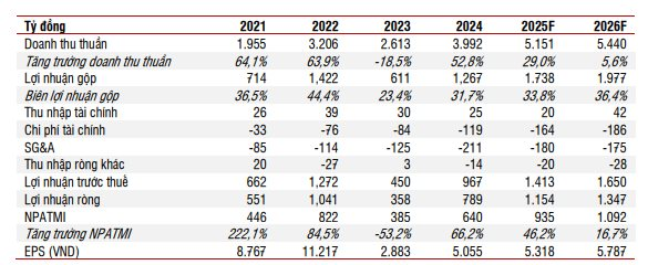 Sang năm 2026, doanh thu ước đạt 5.440 tỷ đồng (+5,6%) và lợi nhuận sau thuế 1.347 tỷ đồng (+16,7%), dù biên lợi nhuận có thể giảm nhẹ khi giá thuê tàu trung chuyển dần cân bằng, nhưng vẫn duy trì ở mức cao hơn trung bình lịch sử.