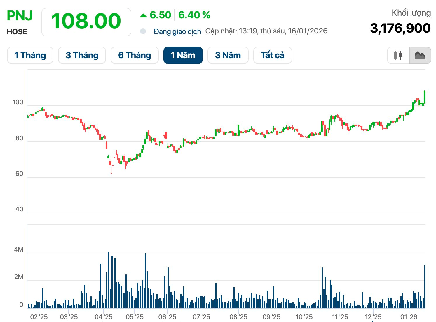 Cũng trong ngày 12/1, PNJ đã chốt danh sách cổ đông để thực hiện thủ tục lấy ý kiến cổ đông bằng văn bản , thời gian lấy ý kiến dự kiến trong tháng 1 năm 2026. PNJ sẽ trình cổ đông thông qua việc phát hành cổ phiếu để tăng vốn cổ phần từ nguồn vốn chủ sở hữu và các vấn đề khác thuộc thẩm quyền của Đại hội đồng cổ đông.