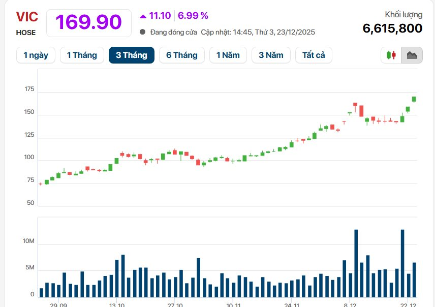 Theo văn bản công bố thông tin gửi Sở Giao dịch Chứng khoán Hà Nội ngày 22/12/2025, Tập đoàn Vingroup (mã chứng khoán: VIC) đã báo cáo kết quả đợt phát hành trái phiếu quốc tế mang mã số VICD2328002. Thương vụ này được hoàn tất vào ngày 16/12/2025 thông qua phương thức phát hành qua đại lý.