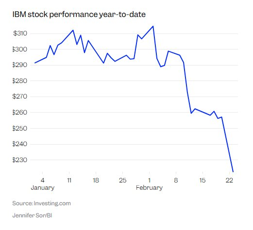 Thị trường đã có câu trả lời ngay lập tức và IBM chính là "nạn nhân" lớn nhất. Cổ phiếu của IBM đã ghi nhận mức giảm kỷ lục 13%, đánh dấu phiên giao dịch tồi tệ nhất của tập đoàn này trong vòng 26 năm qua.