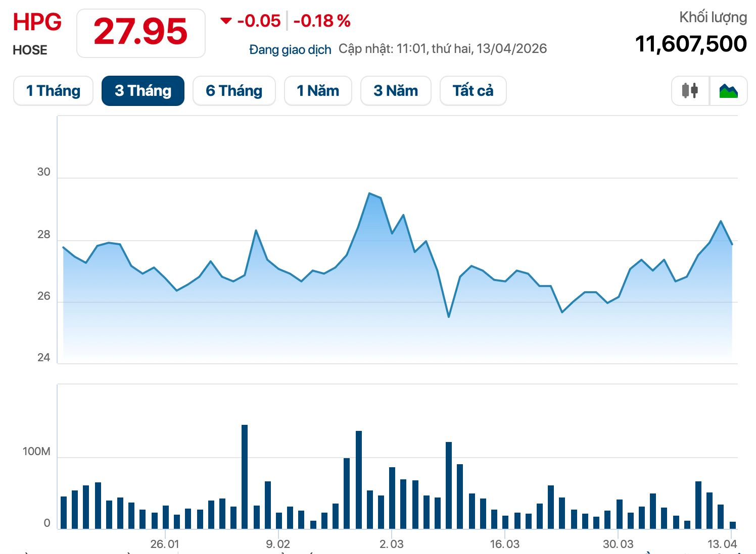 Trên sàn chứng khoán, cổ phiếu HPG chủ yếu dao động trong vùng giá 25.000 – 28.000 đồng/cp trong thời gian diễn ra giao dịch. Ước tính, giá trị giao dịch của ông Trần Vũ Minh vào khoảng 800 tỷ đồng.