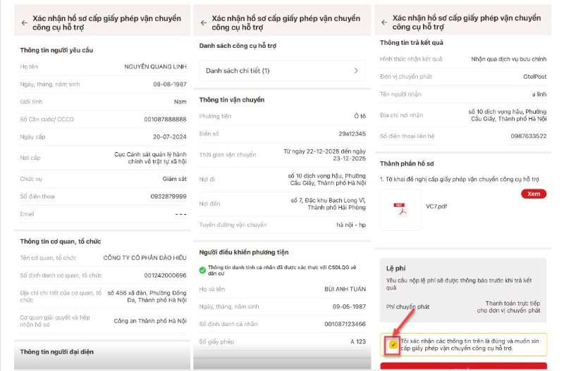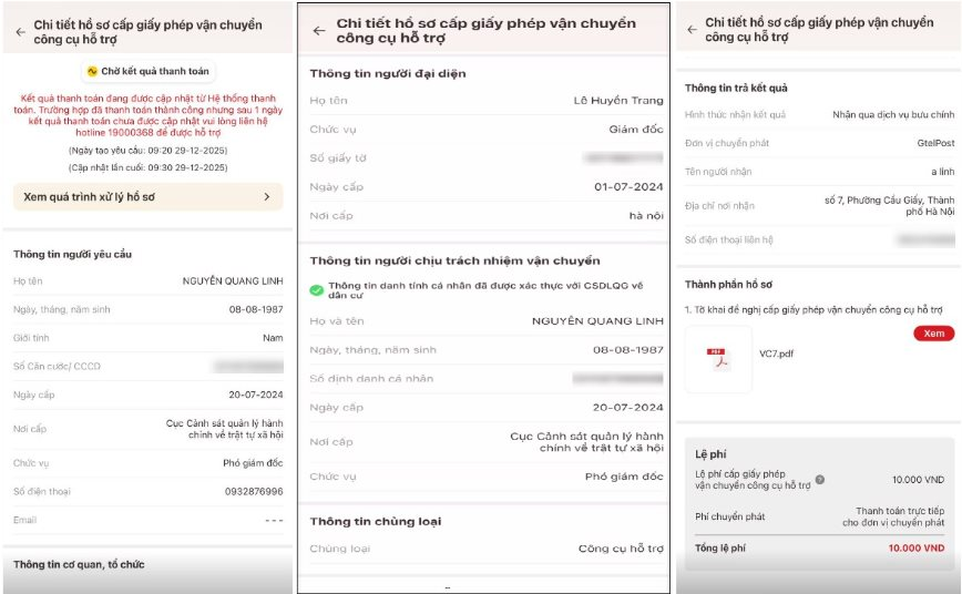 Hướng dẫn cấp giấy phép vận chuyển công cụ hỗ trợ trên VNeID