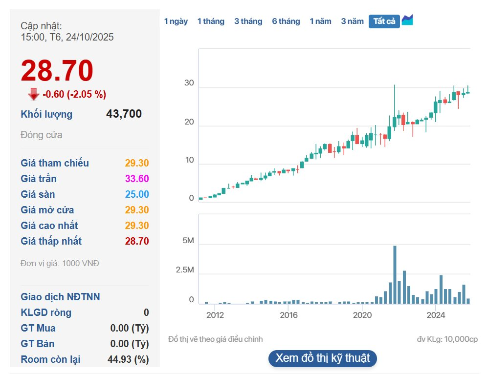 Về kết quả kinh doanh, trong 9 tháng đầu năm 2025, GHC ghi nhận doanh thu thuần đạt gần 236 tỷ đồng, tăng 5% so với cùng kỳ. Lợi nhuận sau thuế đạt gần 124 tỷ đồng, tăng 10% so với cùng kỳ. Tỷ suất lợi nhuận ròng lên tới 52,57%.