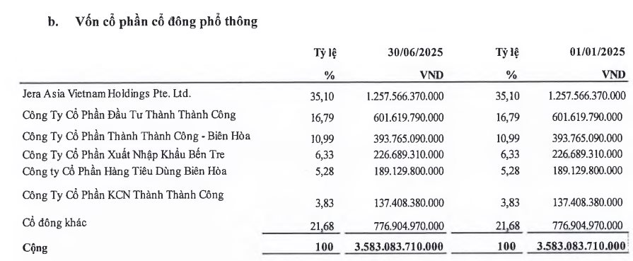 TTC Group hiện sở hữu một phần lớn cổ phần của GEG thông qua nhiều công ty thành viên, với CTCP Đầu tư Thành Thành Công nắm giữ 16,79% vốn điều lệ, CTCP Thành Thành Công - Biên Hòa nắm giữ 10,99%, CTCP Hàng tiêu dùng Biên Hòa nắm giữ 5,28%, CTCP KCN Thành Thành Công sở hữu 3,83%.