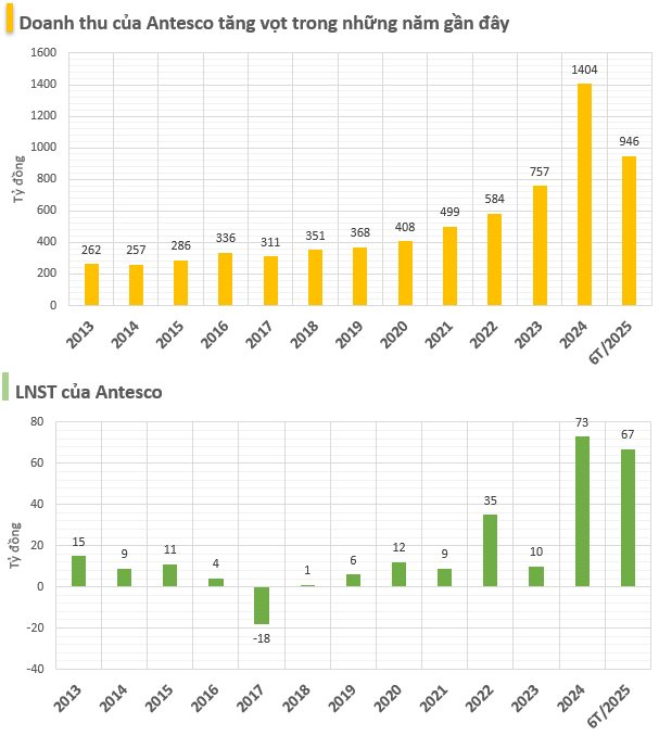 Nửa đầu năm 2025, Antesco ghi nhận 946,5 tỷ đồng doanh thu và 77,5 tỷ đồng lợi nhuận trước thuế, tăng trưởng lần lượt 35,5% và 81% so với cùng kỳ năm ngoái. Kết quả này giúp doanh nghiệp hoàn thành 61% kế hoạch doanh thu và tới 91% kế hoạch lợi nhuận cả năm.