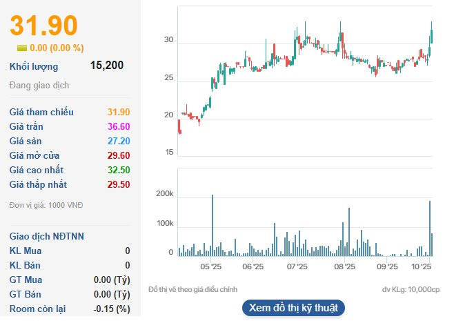 Phiên giao dịch ngày 3/10, cổ phiếu ANT có giá là 31.900 đồng/cp, mức cao nhất lịch sử. Trước đó, đỉnh cũ 31.500 đồng/cp được thiết lập vào ngày 30/7/2025. So với 1 năm trước, cổ phiếu này đã tăng gần gấp đôi và gấp 8 lần so với vùng giá dưới 4.000 đồng/cp hồi cuối năm 2022.