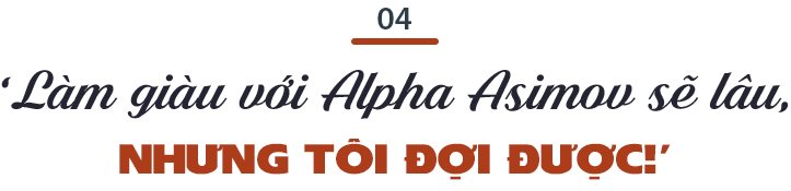 Co-founder này dẫn hình tượng, một cây cổ thụ mọc cả trăm năm nó mới to được, rễ mới bám chắc, cành lá xum xuê và khẳng định: “Làm giàu với Alpha Asimov sẽ lâu, nhưng tôi đợi được! (cười)”.