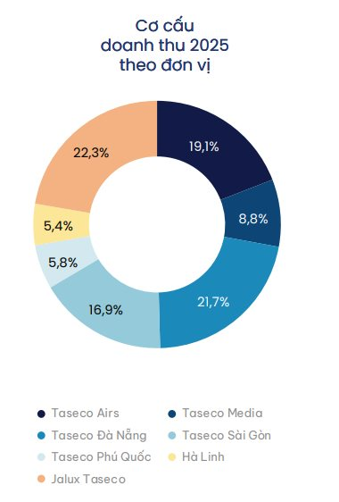 Năm 2026, Taseco Airs đặt kế hoạch doanh thu hợp nhất 2.150 tỷ đồng – tăng 24,5% và lợi nhuận sau thuế là 360 tỷ đồng – tăng 10,6%. Dự kiến tỷ lệ cổ tức trong khoảng 35-45%.