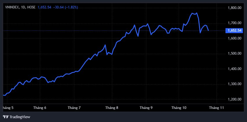 Kết phiên, VN-Index mất 30,64 điểm, tương đương 1,84%, xuống còn 1.652 điểm. Diễn biến này hoàn toàn trái ngược với xu hướng bứt phá của các thị trường chứng khoán châu Á dưới kỳ vọng Cục Dự trữ Liên bang Mỹ (Fed) hạ lãi suất và căng thẳng Mỹ - Trung đang có phần hạ nhiệt.