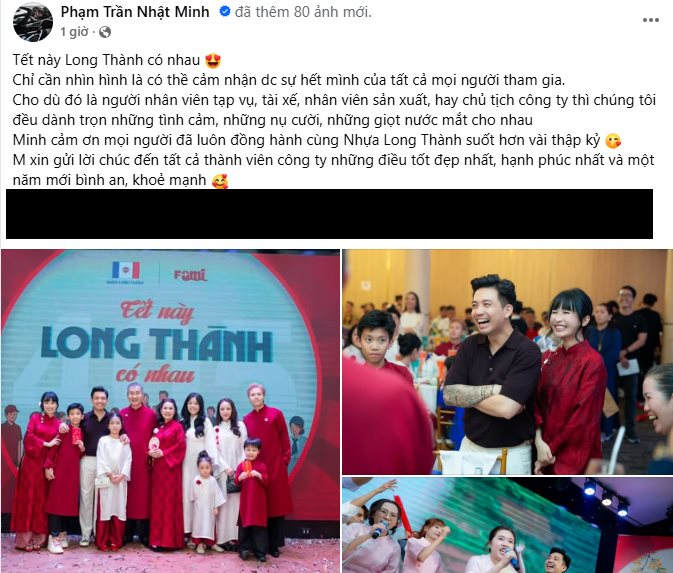 Những ngày cận Tết, không khí rộn ràng không chỉ hiện diện trên các tuyến phố mà còn lan tỏa trong từng doanh nghiệp. Mới đây, doanh nhân Phạm Trần Nhật Minh đã chia sẻ trên trang cá nhân loạt hình ảnh ấm áp trong sự kiện tất niên của Nhựa Long Thành, kèm dòng trạng thái giản dị: “Tết này Long Thành có nhau”.