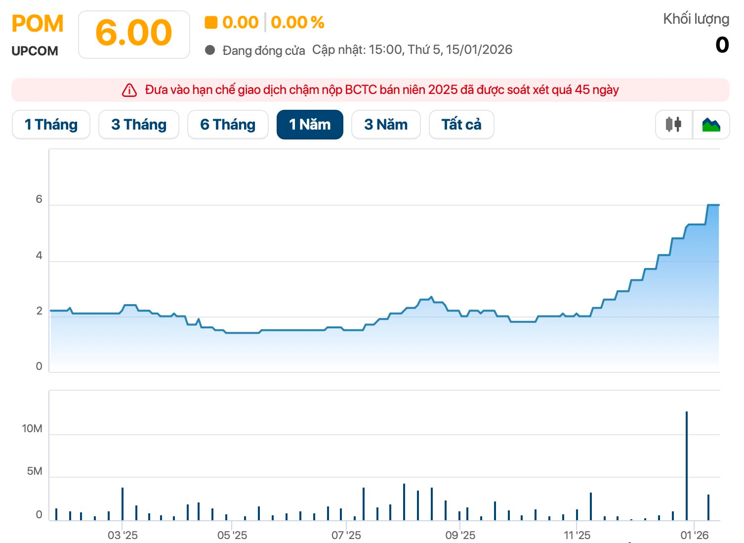 Động thái của cổ đông này diễn ra trong bối cảnh cổ phiếu POM vừa có 9 phiên trần liên tiếp, thị giá tăng gấp 3 lần lên mức 6.000 đồng/cp. Đáng chú ý, cổ phiếu POM còn đang trong diện hạn chế giao dịch và chỉ được giao dịch vào thứ Sáu hàng tuần. Vốn hóa thị trường của Pomina tương ứng vào khoảng 1.700 tỷ trong khi vốn điều lệ gần 2.800 tỷ đồng.