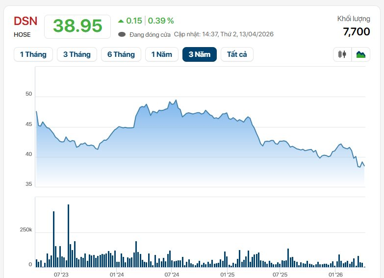 Chốt phiên 13/4, thị giá DSN đạt 38.950 đồng/cp.