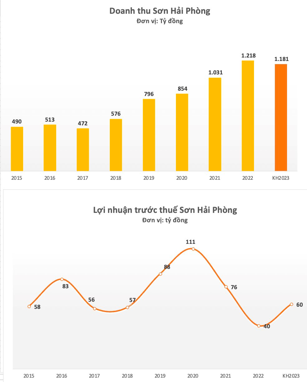 Về kế hoạch kinh doanh năm 2023, Sơn Hải Phòng đặt mục tiêu doanh thu đạt 1.181 tỷ đồng, giảm nhẹ so với năm 2022. Lợi nhuận trước thuế mục tiêu đạt 60 tỷ đồng, tăng 50% so với cùng kỳ. Nếu hoàn thành kế hoạch, đây sẽ là năm thứ 3 doanh nghiệp cán mốc doanh thu trên nghìn tỷ đồng. Về sản lượng tiêu thụ, Sơn Hải Phòng dự kiến đạt 17.000 tấn, trong đó 13.000 tấn sơn và 4.000 tấn nhựa Alkyd.
