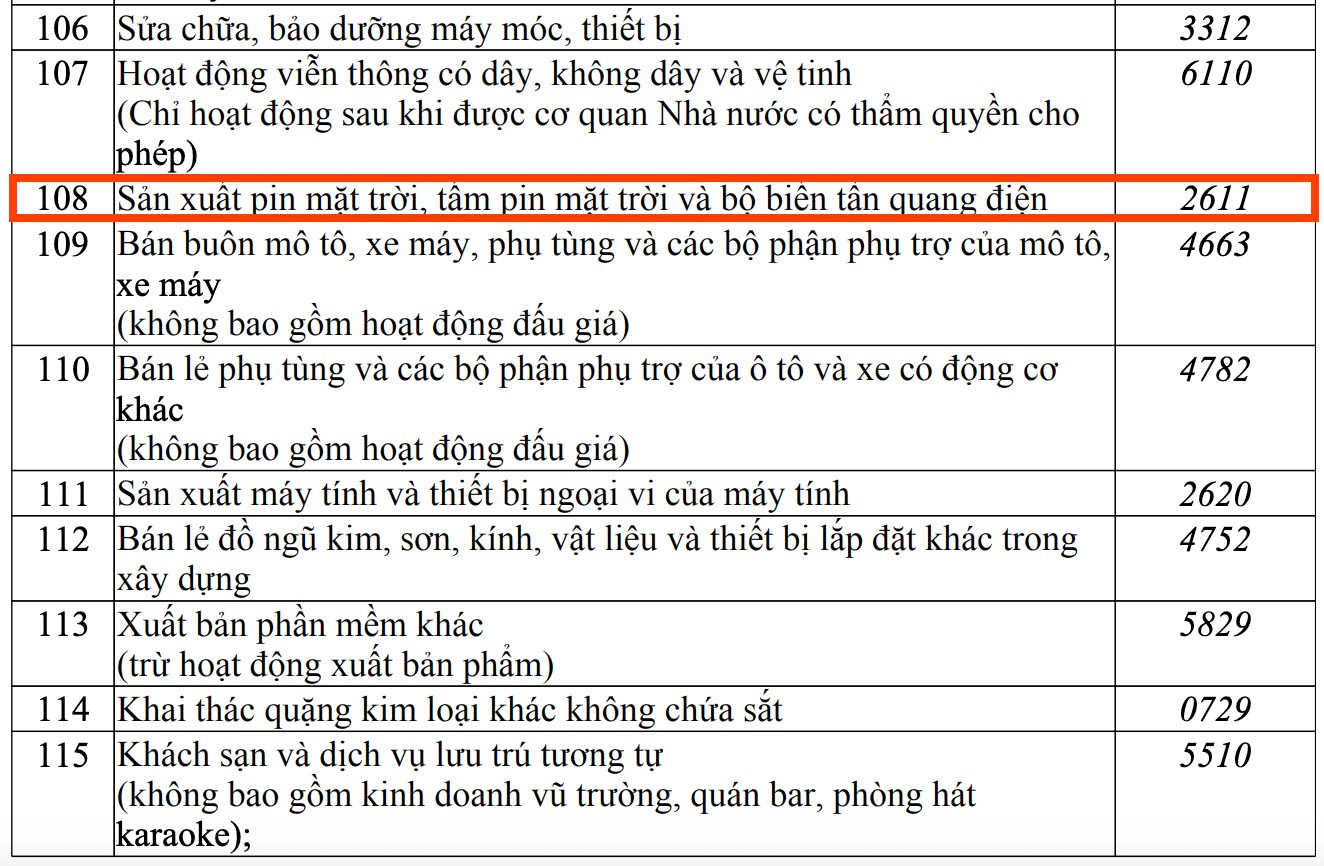 Bên cạnh đó, FLC cũng đã bổ sung ngành Sản xuất pin mặt trời, tấm pin mặt trời và bộ biến tần quang điện (Mã ngành: 2611).