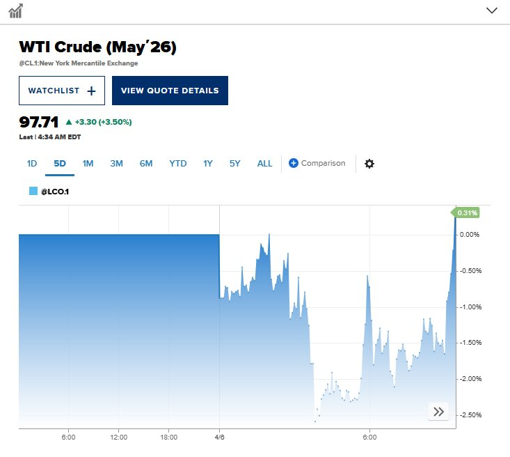 Diễn biến này xuất hiện sau khi Iran cáo buộc Mỹ vi phạm các điều khoản trong thỏa thuận ngừng bắn kéo dài hai tuần. Tâm lý lo ngại về việc căng thẳng tái leo thang gây gián đoạn nguồn cung năng lượng đang bao trùm thị trường.