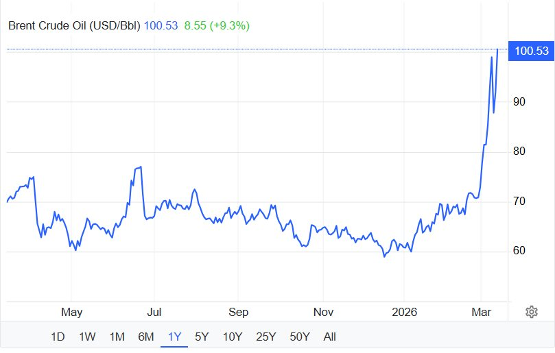 Trong phiên giao dịch, giá dầu Brent – chuẩn dầu thô toàn cầu – tăng khoảng 8,88%, chạm mốc 100 USD/thùng. Trong khi đó, giá dầu West Texas Intermediate (WTI) của Mỹ cũng tăng mạnh 8,8%, lên khoảng 95 USD/thùng.