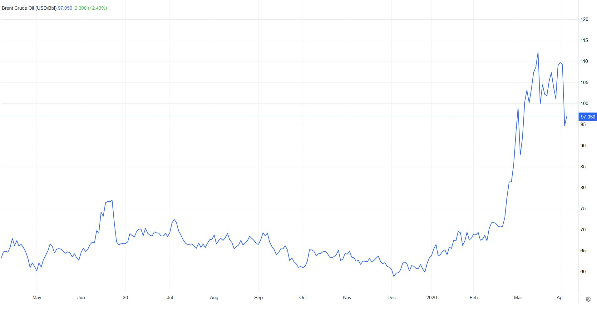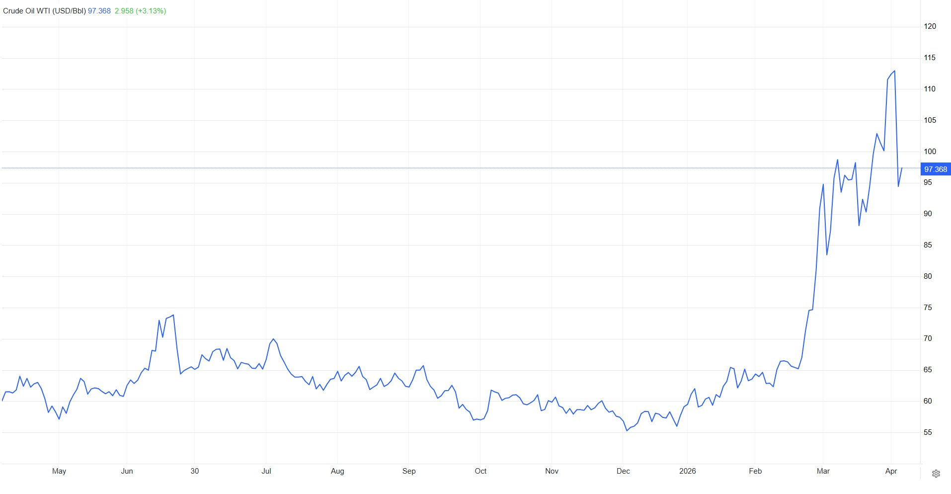 Theo ghi nhận vào lúc 12h45 theo giờ Việt Nam, giá dầu thô Brent giao tháng 6 tăng 2,43% lên 97,05 USD, trong khi giá dầu thô West Texas Intermediate (WTI) giao tháng 5 của Mỹ tăng 3,13% lên 97,36 USD.