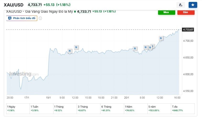 Thị trường tài chính toàn cầu đang chứng kiến một cột mốc chưa từng có tiền lệ: Giá vàng quốc tế đã chính thức xuyên thủng ngưỡng 4.700 USD/ounce vào phiên giao dịch ngày 20/1.