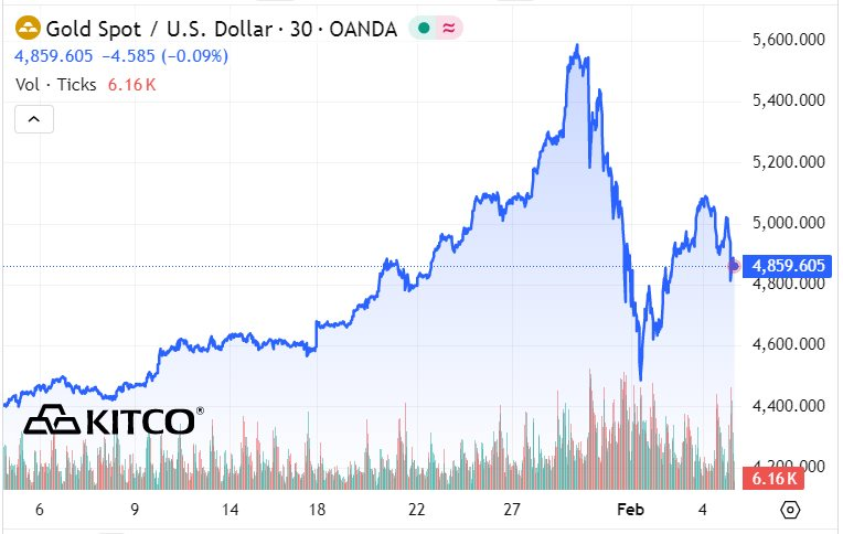 Đà suy yếu này đã chấm dứt nhịp hồi phục ngắn hạn của kim loại quý sau khi giá chạm đáy quanh 4.400 USD/ounce trong phiên giao dịch ngày 2/2.