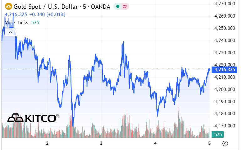 Trên thị trường quốc tế, giá vàng giao ngay hiện giao dịch quanh mốc 4.216,1 USD/ounce, tăng 24,3 USD/ounce so với cùng thời điểm phiên trước. Quy đổi theo tỷ giá của Vietcombank, giá vàng thế giới tương đương 134,3 triệu đồng/lượng (chưa gồm thuế và phí), thấp hơn giá trong nước khoảng 19,9 triệu đồng/lượng.