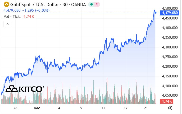 Theo các phân tích, đà tăng tốc của giá vàng trong những ngày cuối năm 2025 được hỗ trợ bởi nhiều yếu tố, trong đó nổi bật là bất ổn địa chính trị kéo dài và xu hướng nới lỏng chính sách tiền tệ trên phạm vi toàn cầu. Thị trường hiện tiếp tục đặt kỳ vọng Cục Dự trữ Liên bang Mỹ (Fed) sẽ hạ lãi suất hai lần trong năm 2026.