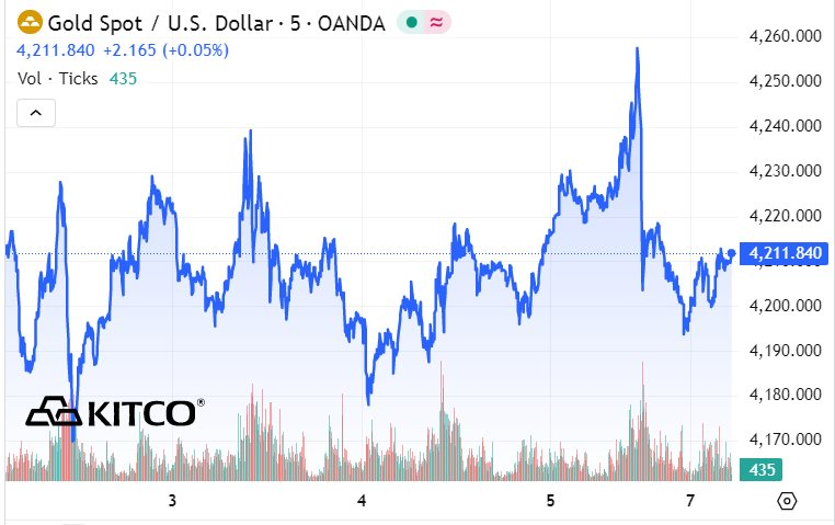 Trên thị trường quốc tế, giá vàng giao ngay hiện giao dịch quanh mốc 4.211,1 USD/ounce, tăng 10,3 USD/ounce so với cùng thời điểm phiên trước. Quy đổi theo tỷ giá của Vietcombank, giá vàng thế giới tương đương 134 triệu đồng/lượng (chưa gồm thuế và phí), thấp hơn giá trong nước khoảng 20,5 triệu đồng/lượng.