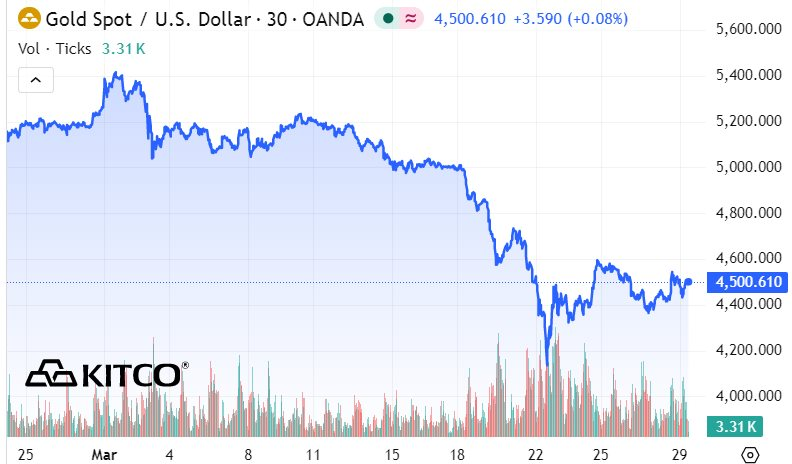 Trên thị trường quốc tế, giá vàng giao ngay hiện ở mức 4.500,6 USD/ounce, giảm 12,1 USD/ounce so với cùng thời điểm phiên trước. Quy đổi theo tỷ giá của Vietcombank, giá vàng thế giới tương đương khoảng 142,9 triệu đồng/lượng (chưa bao gồm thuế và phí). Mức giá này thấp hơn giá vàng trong nước khoảng 30 triệu đồng/lượng.