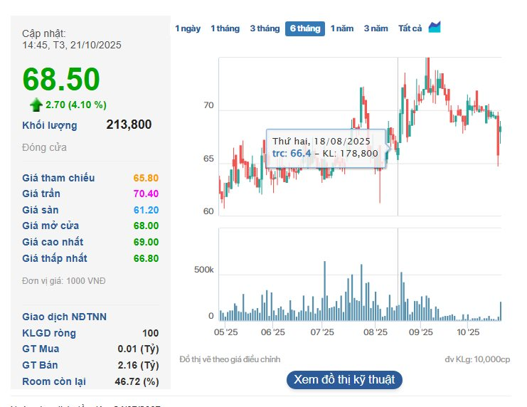Trên thị trường chứng khoán, thị giá TRC duy trì xu hướng tăng trưởng, từ vùng giá 62.000 đồng/cổ phiếu hồi tháng 5 đã có thời điểm vượt mốc 70.000 đồng/cổ phiếu. Kết thúc phiên 21/10, cổ phiếu này đang giao dịch quanh mức 68.500 đồng/cổ phiếu.